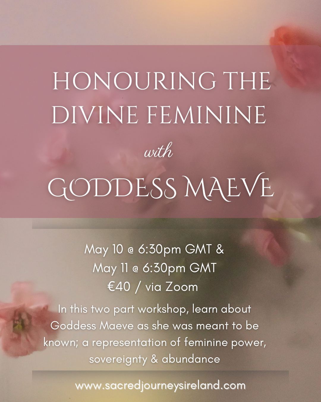 Join this two-part online workshop connecting to the Irish Goddess Maeve and honour your Divine Feminine.
